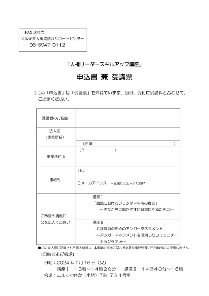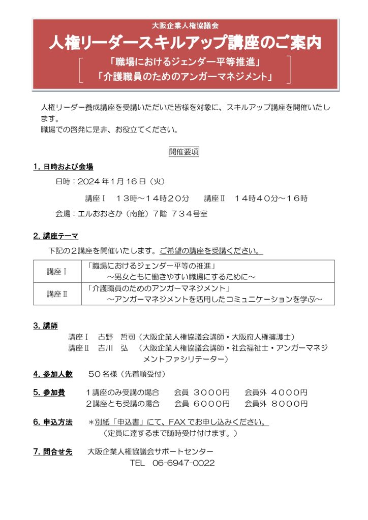 人権リーダースキルアップ講座 大阪企業人権協議会サポートセンター